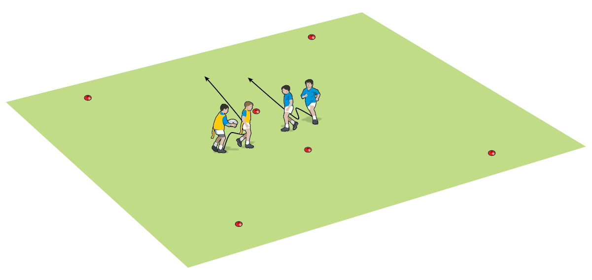 Improve the players’ lateral agility and then speed with this reaction race. It starts simply, but the variations will create challenges for all the participants.