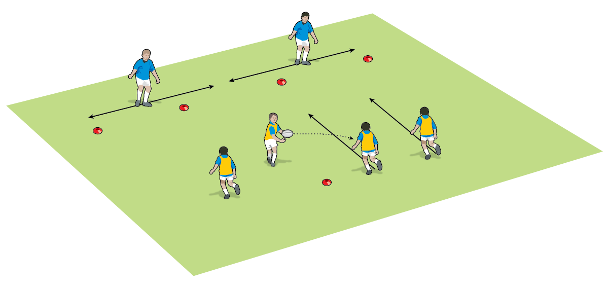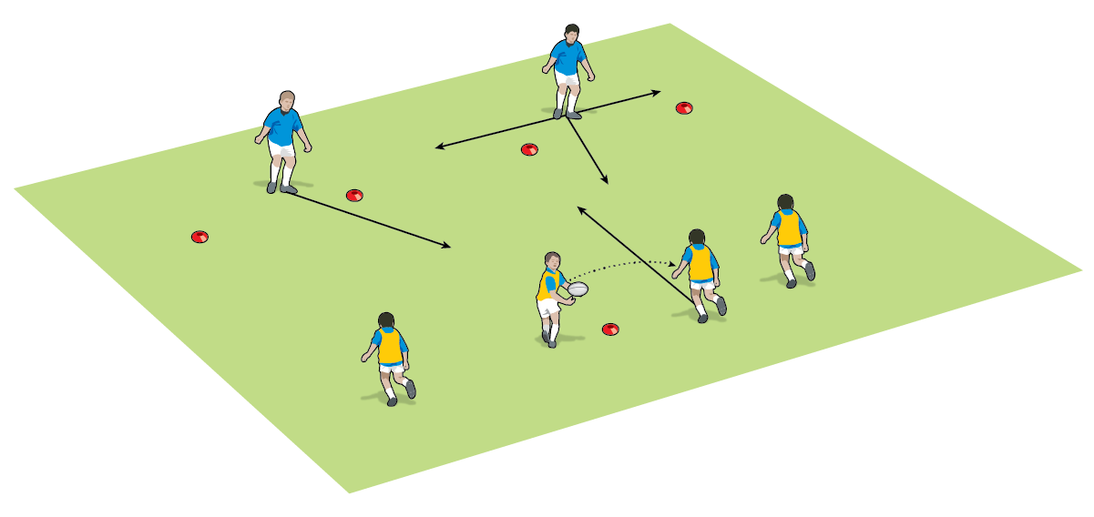 The cone targets provide a focus for players to run to, but more importantly to pass to as well.