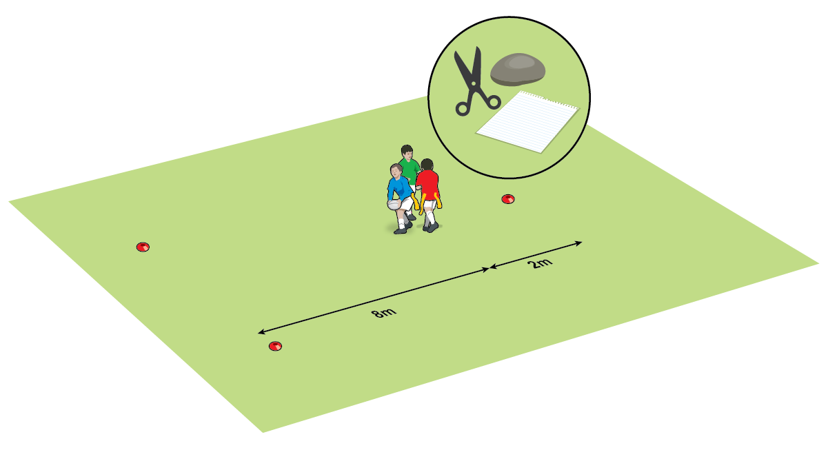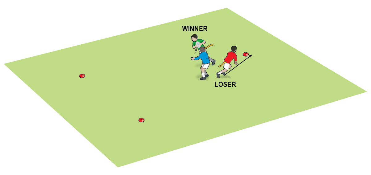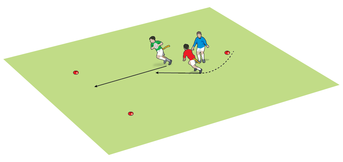 Use this reaction, pass and chase game to improve your players’ basic skills. The simple start can be developed into lots of different versions. You can set up lots of groups at the same time.