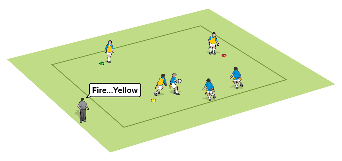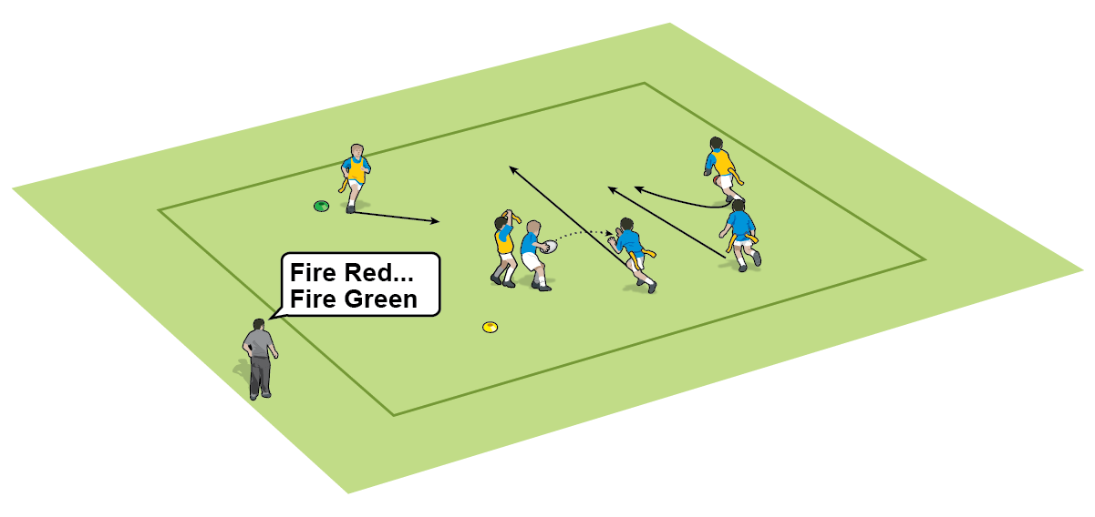 Get your players to be aware of the space to attack, so run forward, while their support players aim to keep connected. The ball carrier may even pass before being tagged.