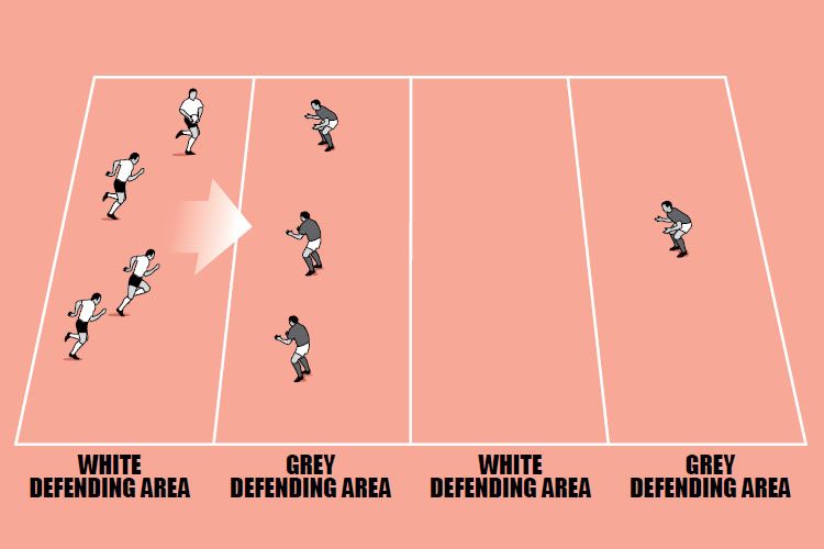 This session works on players taking the ball into contact in groups of four. This is most likely in a game when you know the opposition is ...
