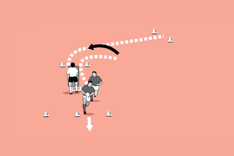 A ball carrier going into contact should always look to drive past the defender. The next player in support can then follow in behind the ball carrier, to either drive him through, pick up or protect the ball, or take an offload. This session concentrates on the support player’s positioning.