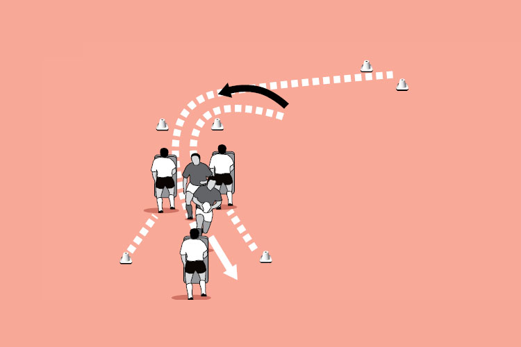Though you should be coaching the full range of support decisions, this exercise can hone the options you want for the game plan. You might want offloads, or mini-mauls or quick rucks.