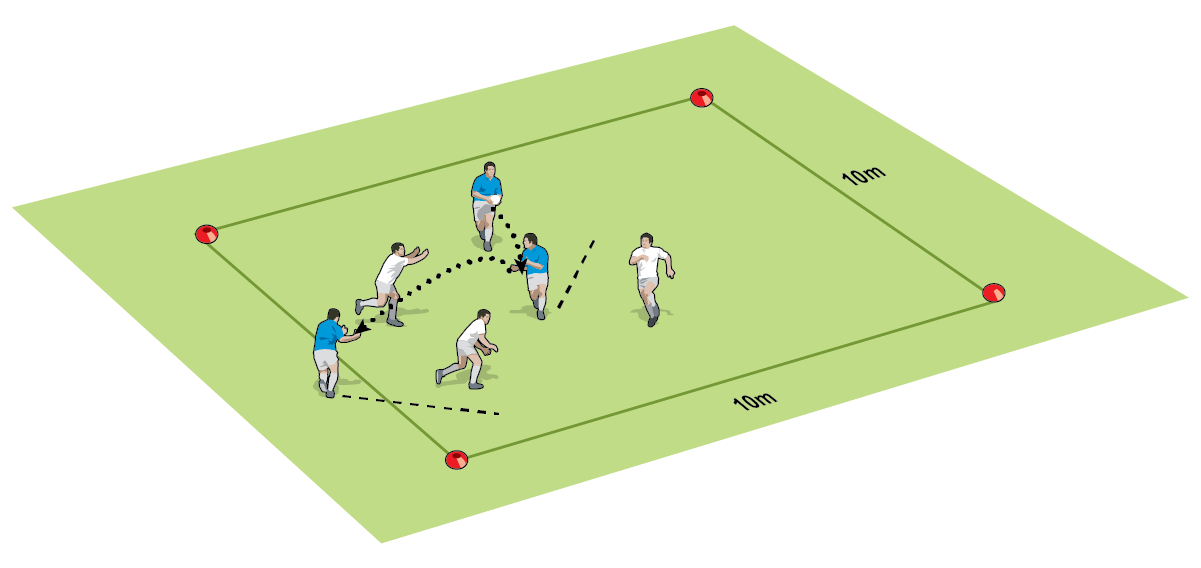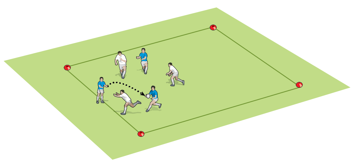 ‘Escape the square’ is a quick game that can be used in warm-ups to get players focused on moving the rugby ball in attack, scanning for space and communicating with team-mates. By Ged Hall, Sales Sharks DPP