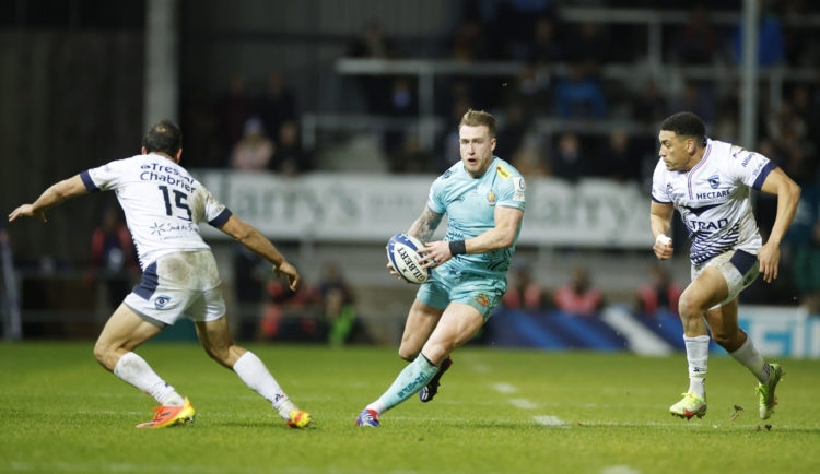 The catcher can attack themselves or pass to a support player, immediately moving the point of attack. Most kick-chases will have one of two front chases and then a line of defenders, so the decision to pass or run depends on where those defenders are.