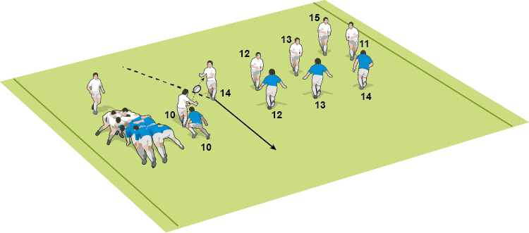 In practice sessions, you can set up the scenarios using semi-opposed rugby to test out how your team might take advantage of the new formations. The play focuses on the decisions made by the 10.