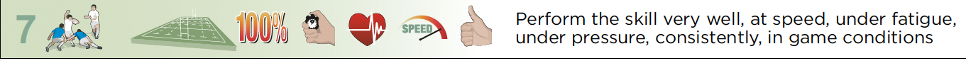 Coaches should progress players systematically through the seven skills steps to ensure they can perform fundamental rugby skills in game conditions.