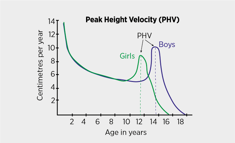 Girls will experience an earlier PHV compared to boys, but boys will grow more during this period.