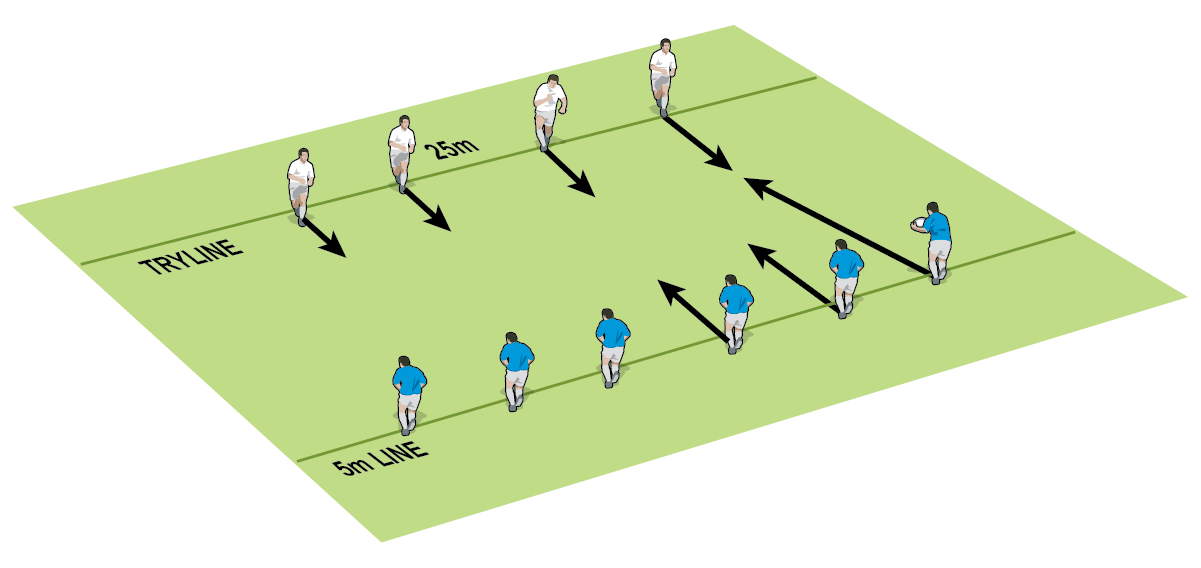 Play 6v4 on a 25m wide area between the try line and 5m line.
