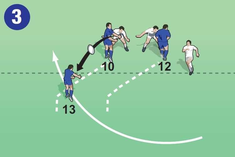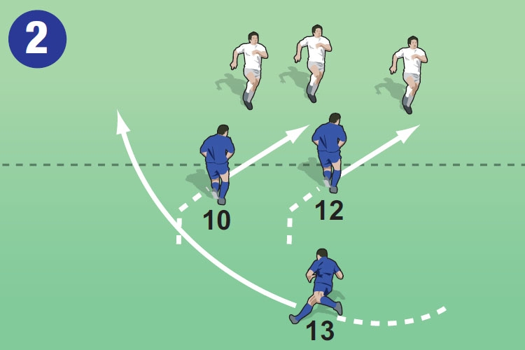 If their 10 is a weak tackler, this will pressure them to step to make a tackle. They won’t be expecting to be involved because focus tends to be on the inside centre.