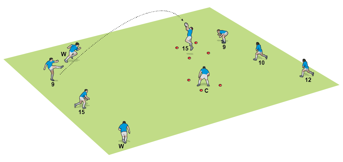 This session works through the main kicks needed in a match: Grubber, punt, box and high ball. The players will also be able to work on catching.