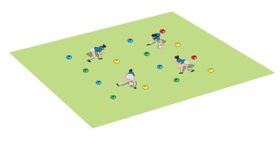 We allowed other players to drop the ball into an empty square if the player was still collecting the ball. This was mainly because of the laughter it caused! As players have become more proficient with the game, I have also started with more than two balls and tried to incorporate the variety of balls used. I have a collection of different sized footballs, rugby balls, solo-skill rugby balls and tennis balls which I use in this game.