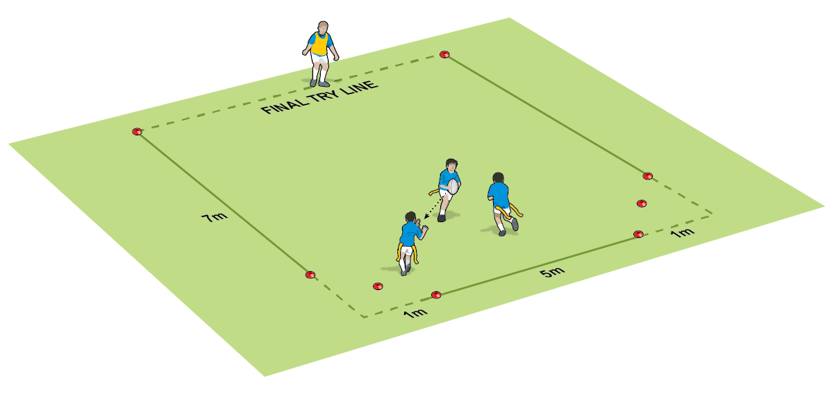 Challenge the attackers to come up with ways to score three tries without being touched. They have three try zones, and different rules to keep them thinking.
