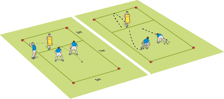 Fumbled or missed ball: If there is no clean catch, or the ball is missed, then the lineout players have three seconds to get to a ball which is 10m away and behind the lineout. One of the players picks up the ball and runs through the box in front, while the defenders aim to stop them. Play full contact.
