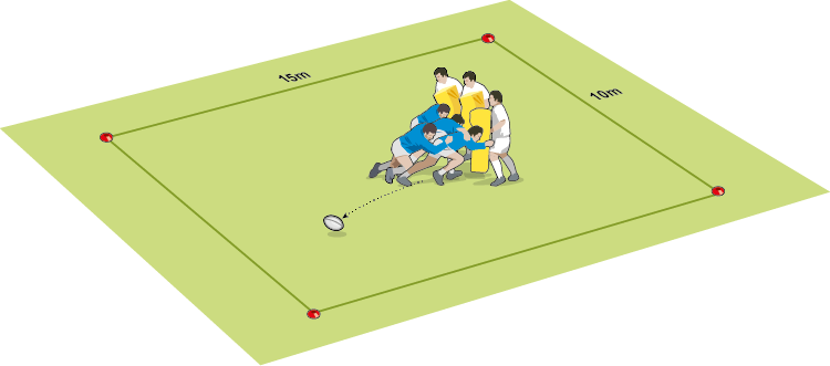 Game situation: Split your forwards in two. They compete at one lineout. When the lineout is over, they run to a 20m box about 10m away and play against each other until a try is scored, or an infringement occurs. Throw the ball to one of the teams of forwards as they run over, with the ball going to the team who won the lineout.
