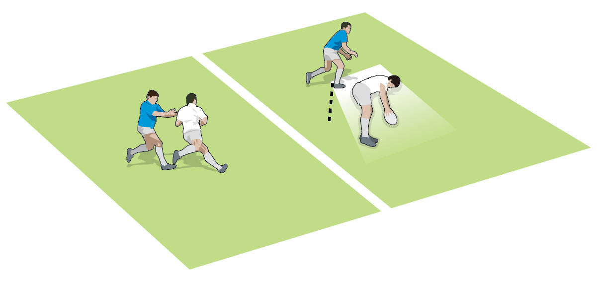 Don’t lose the ball in the contact area by playing away from the body on the ground fast, and then away from the contact area quickly.