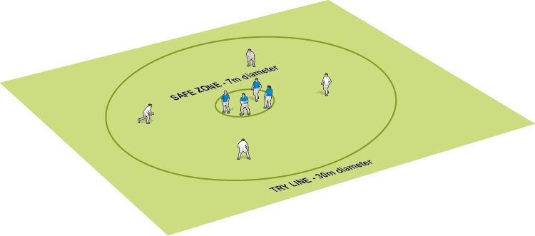 One try line circle about 30m diameter.